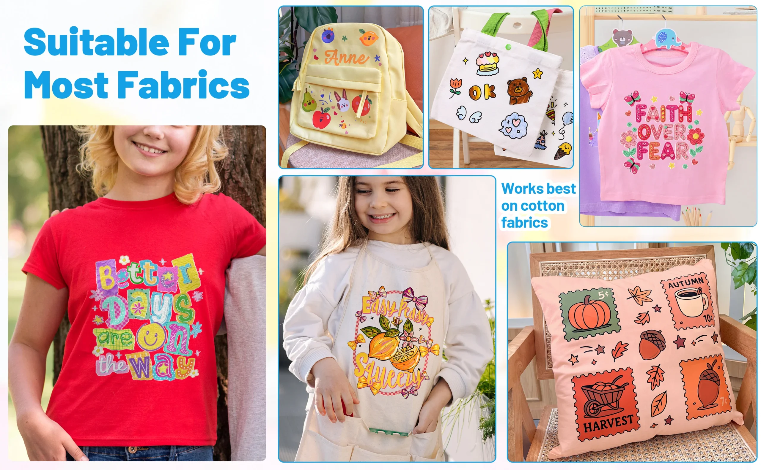 • Embellishes your shirts, t-shirts, caps, bags, shoes, jeans, aprons, and home décor items made with fabric